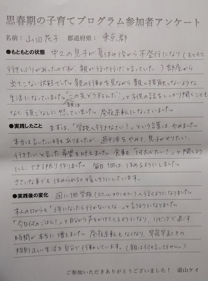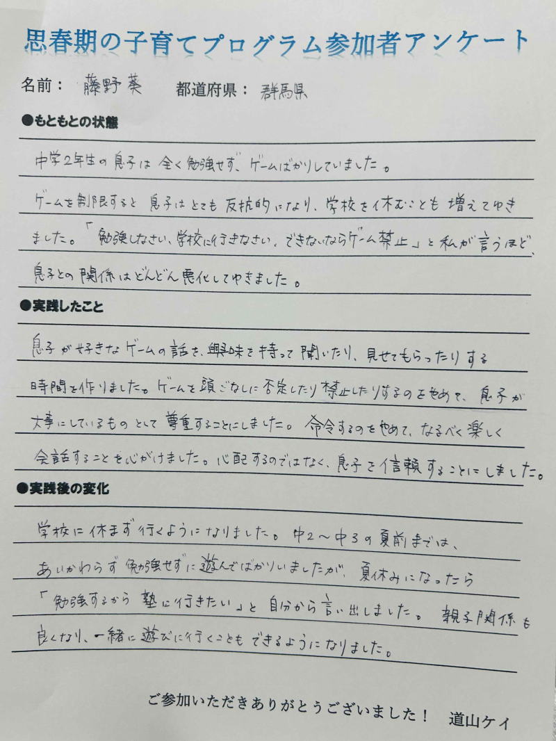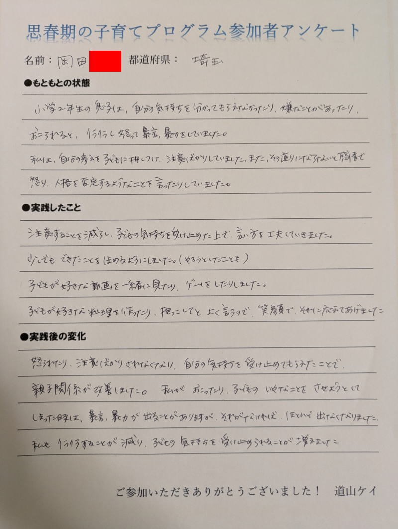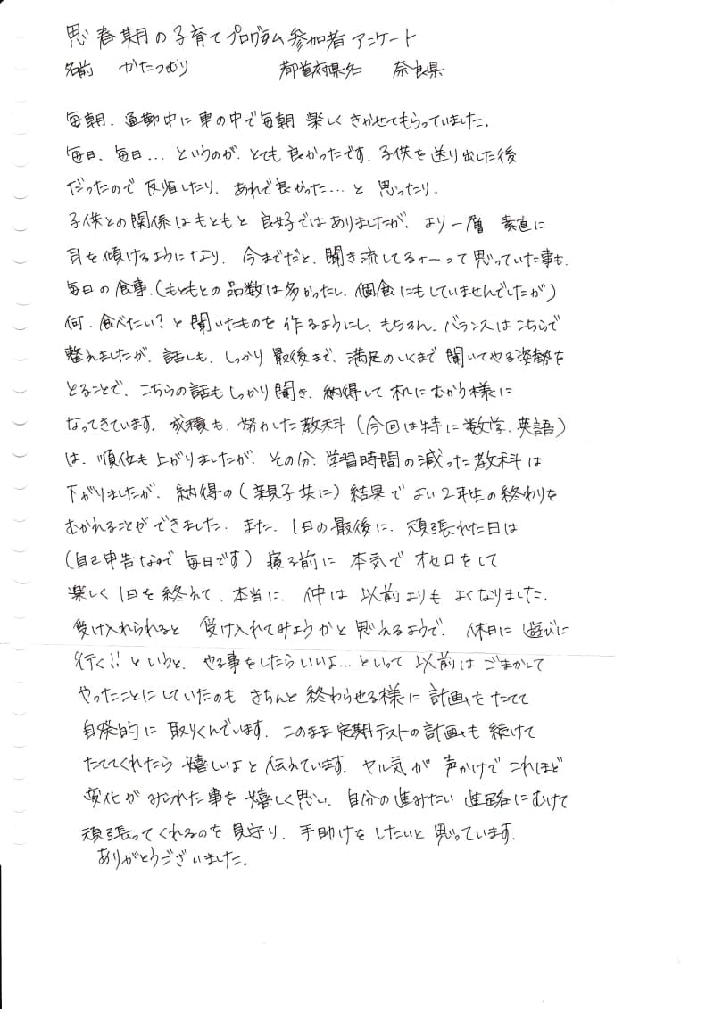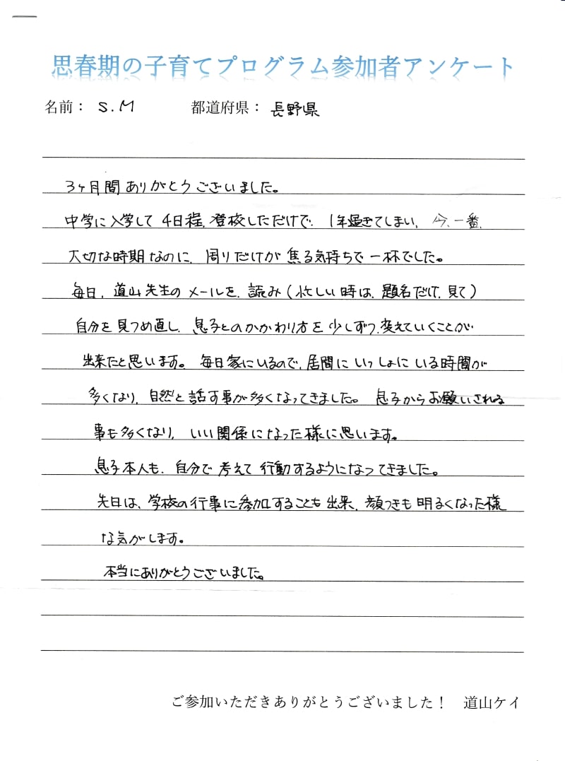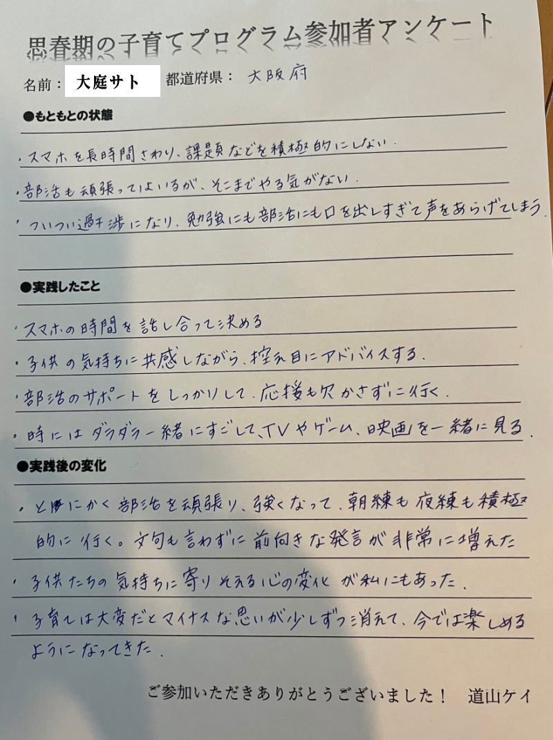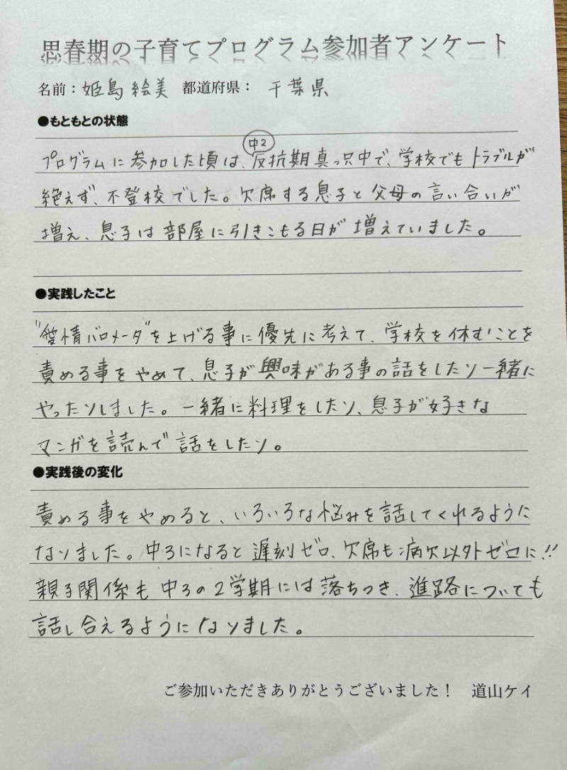 1か月後には必ずお子さんの激しい反抗期が収まり、