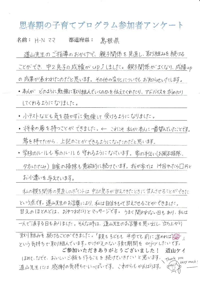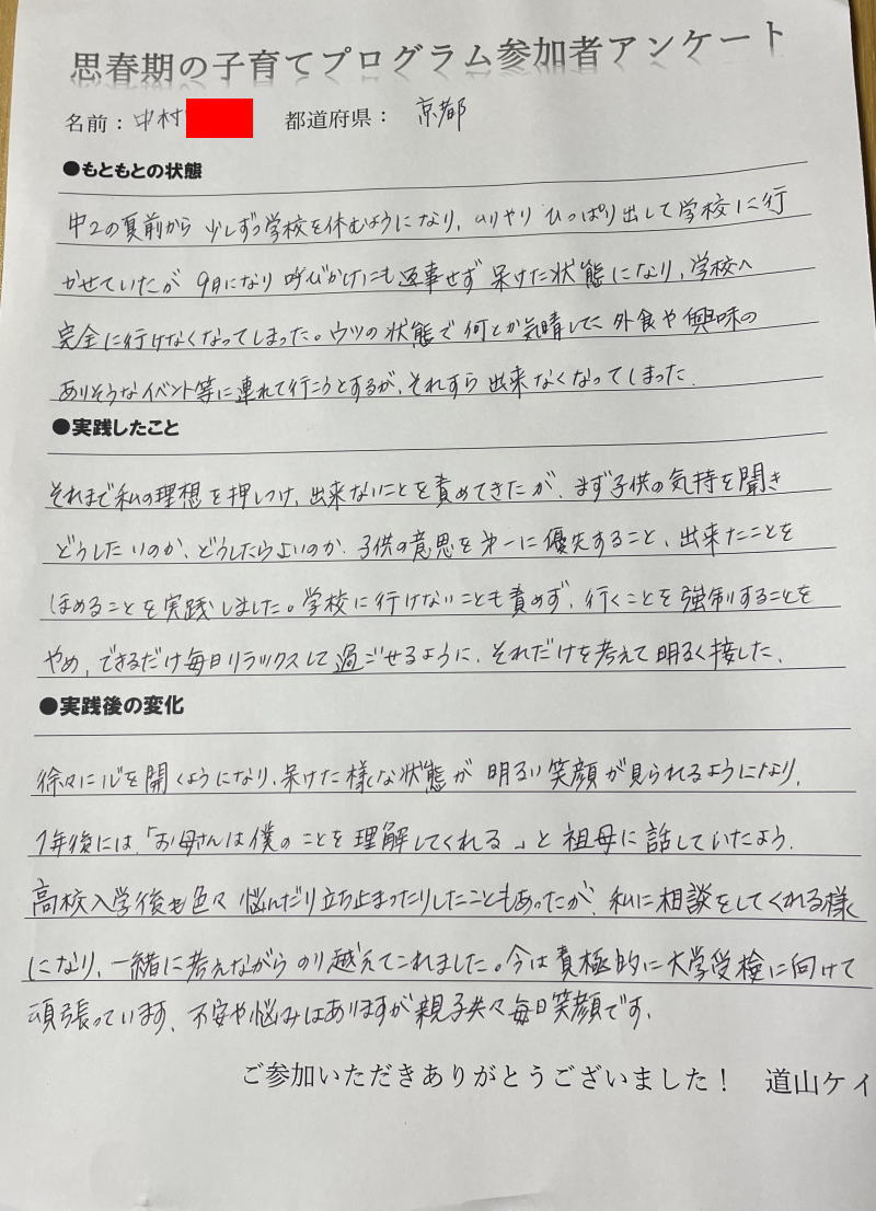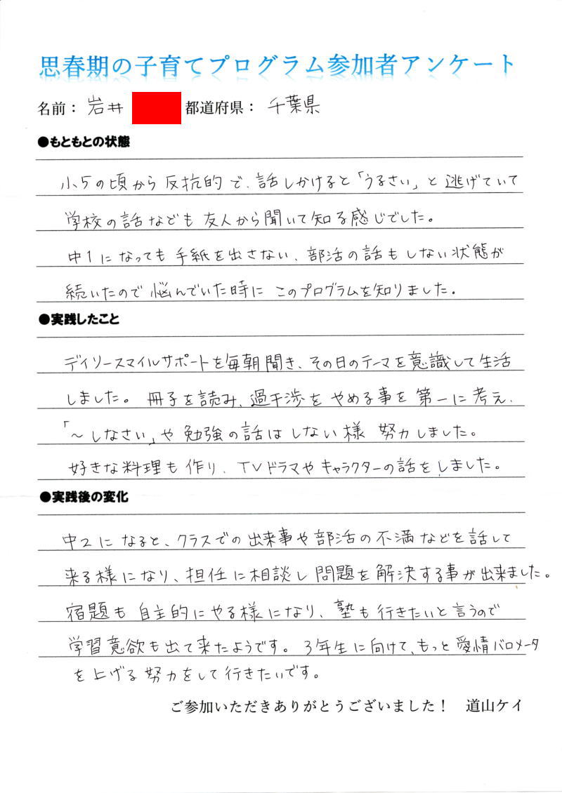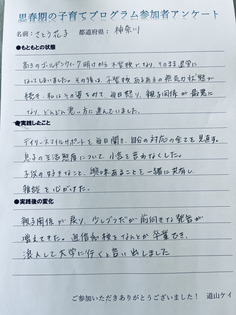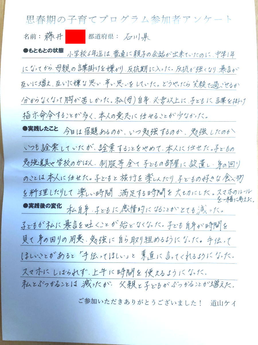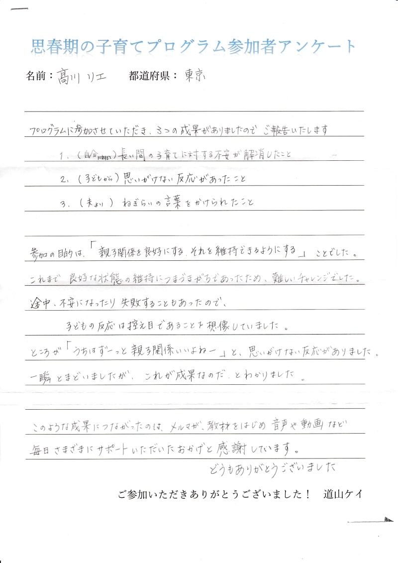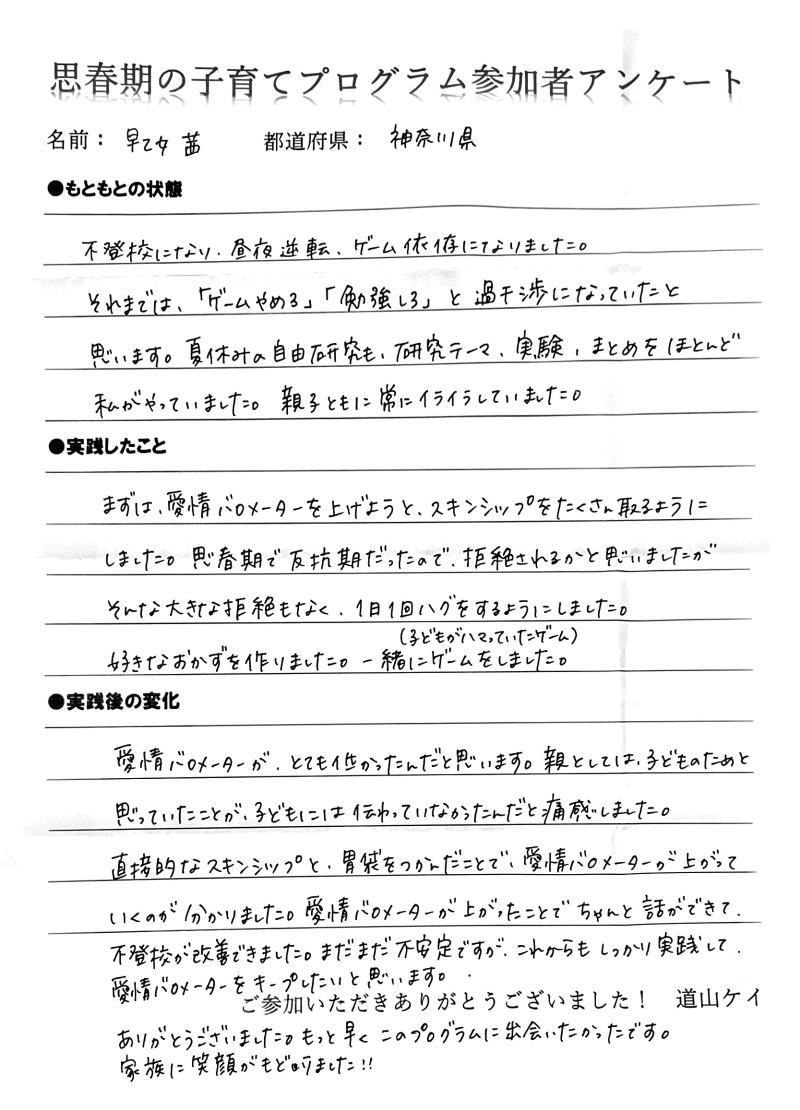 1か月後には必ずお子さんの激しい反抗期が収まり、