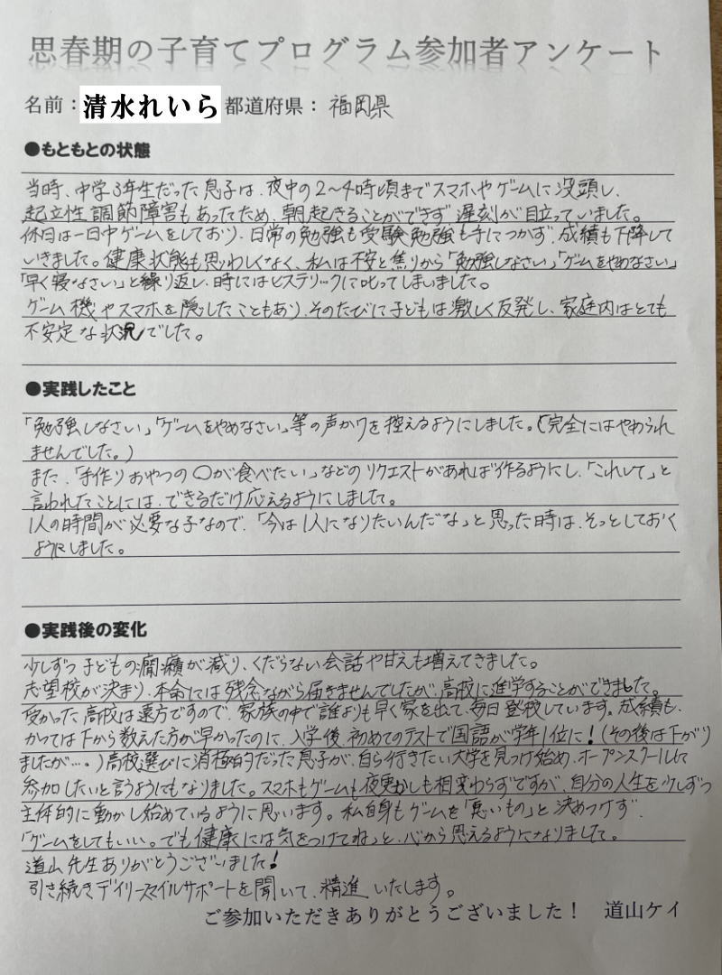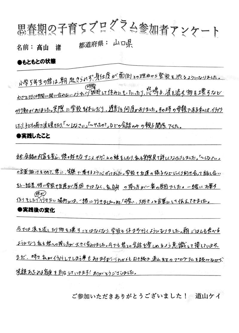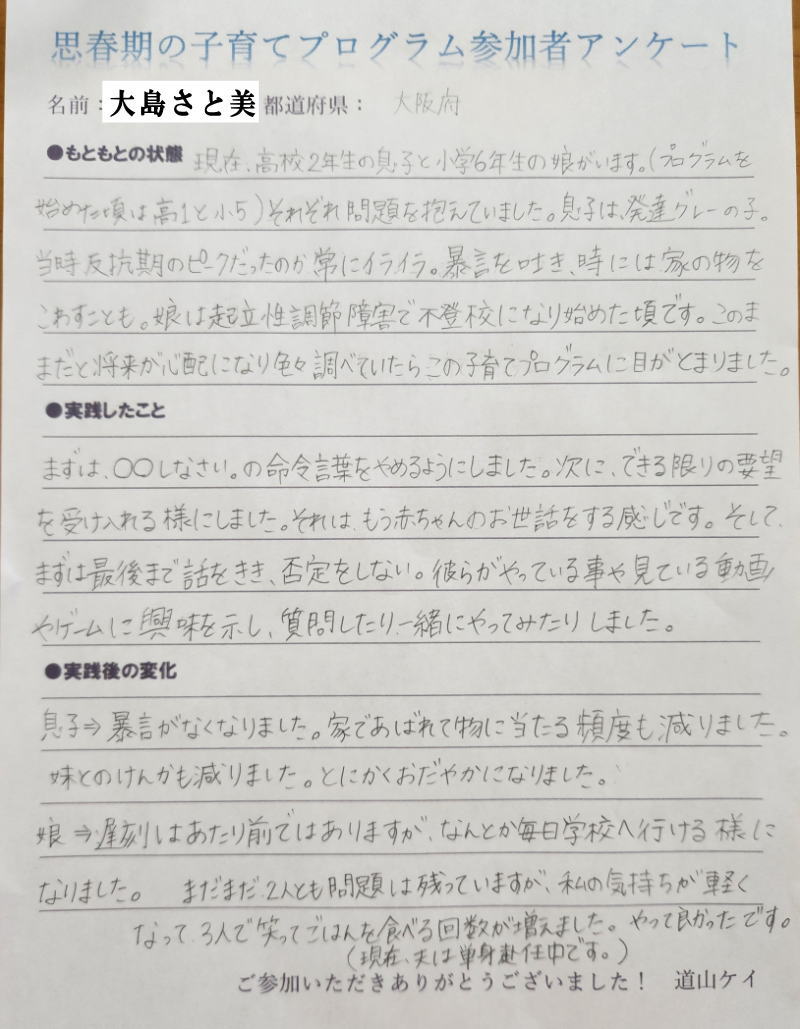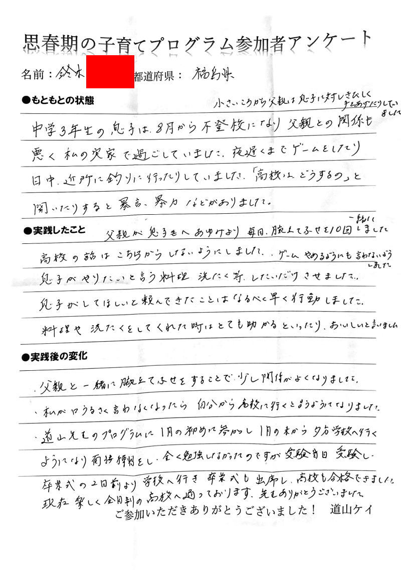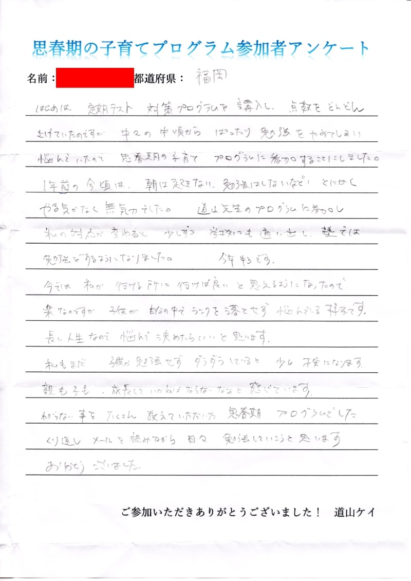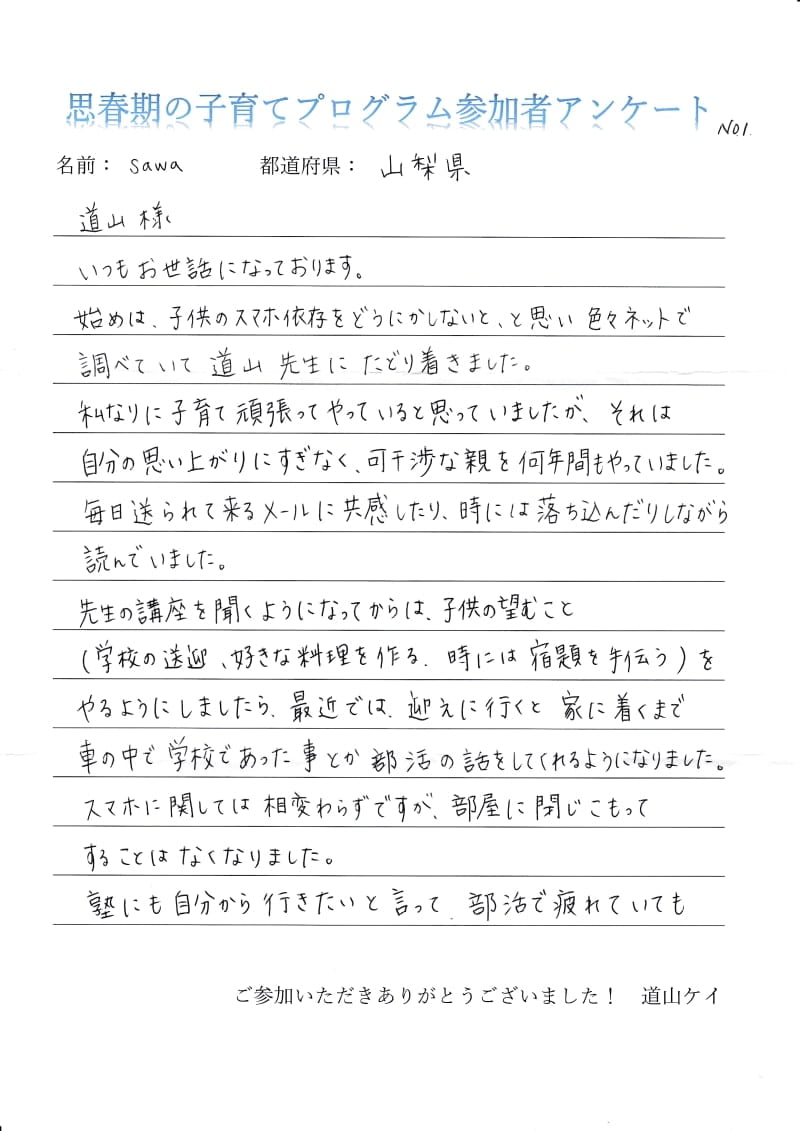 1か月後には必ずお子さんの激しい反抗期が収まり、