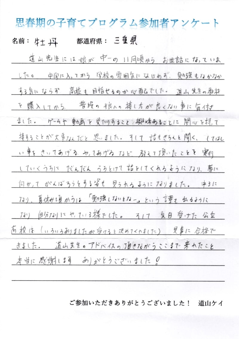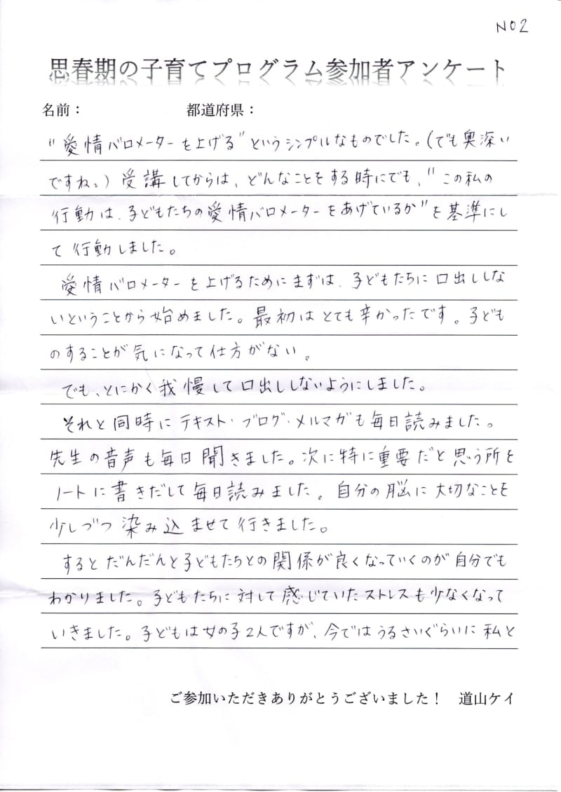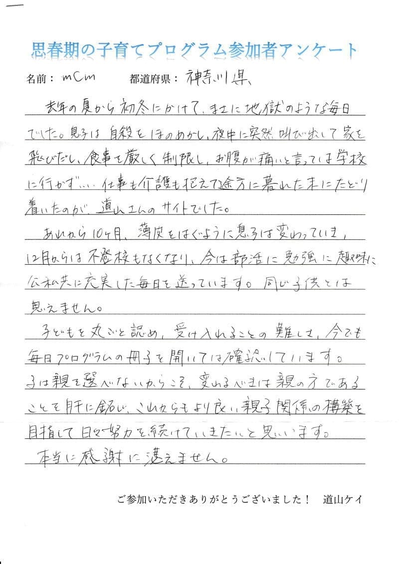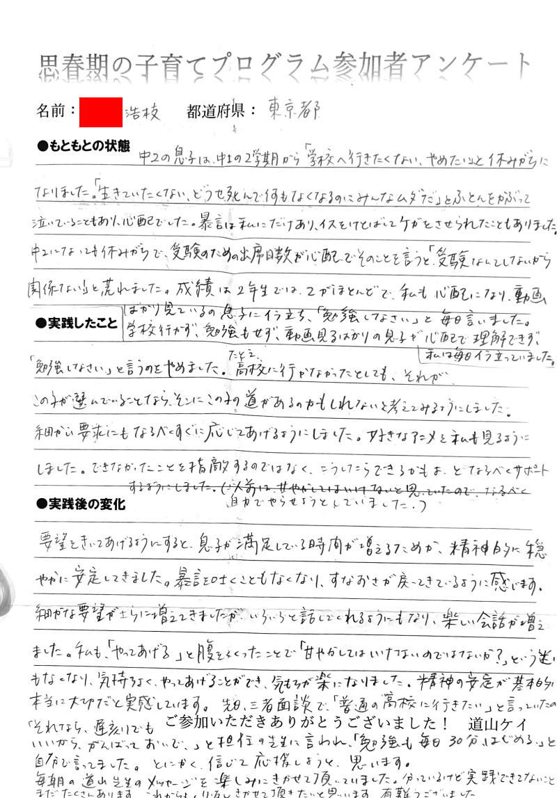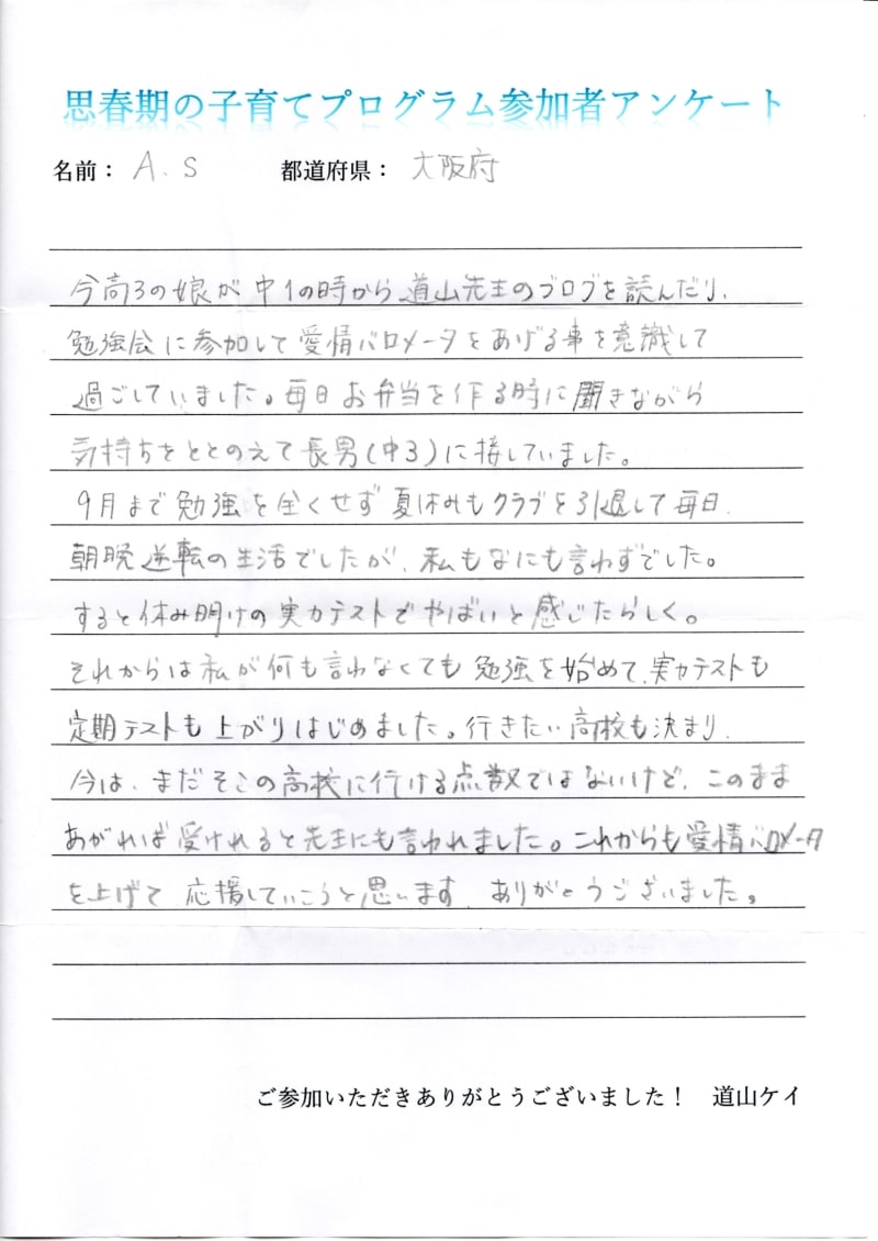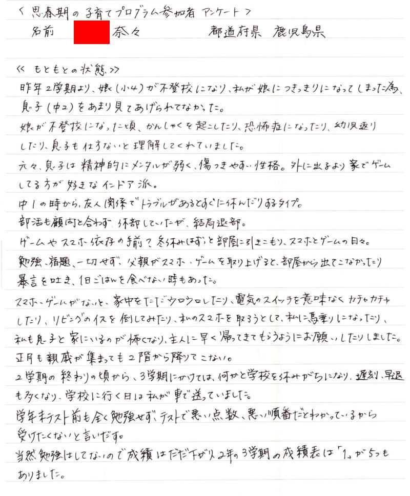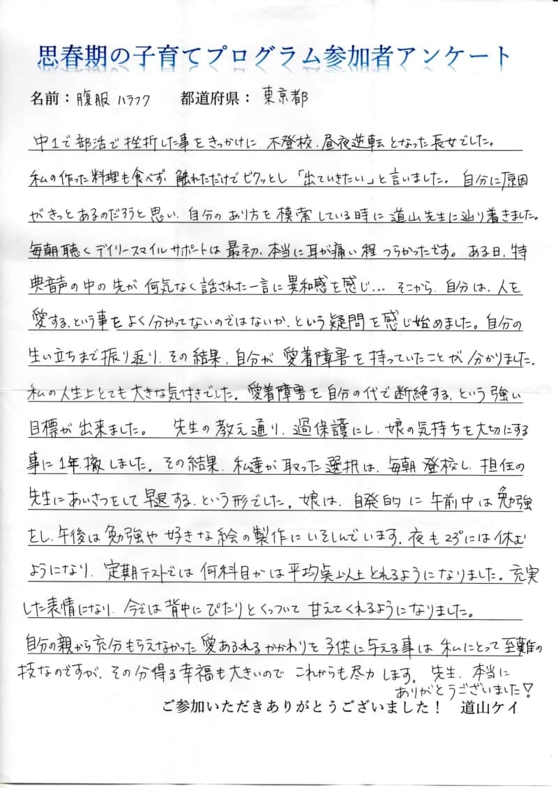 1か月後には必ずお子さんの激しい反抗期が収まり、