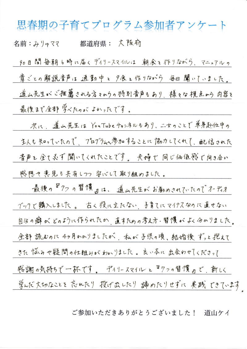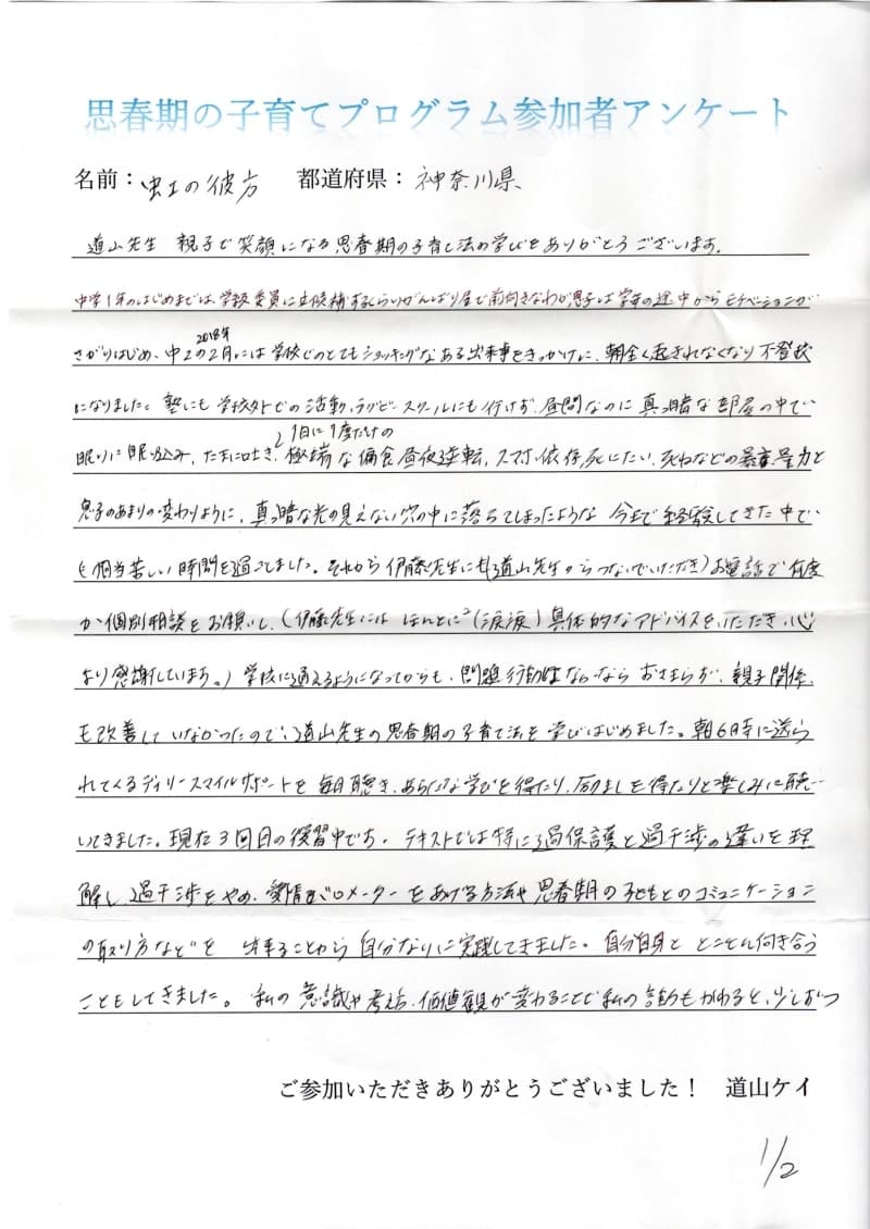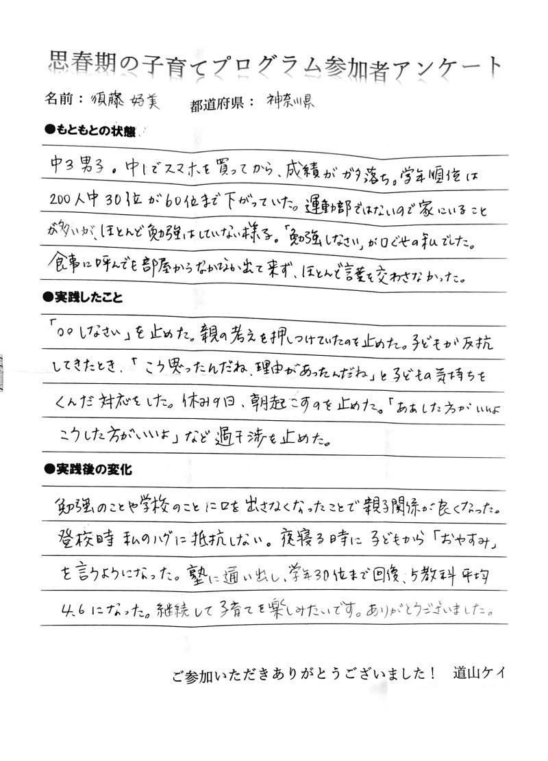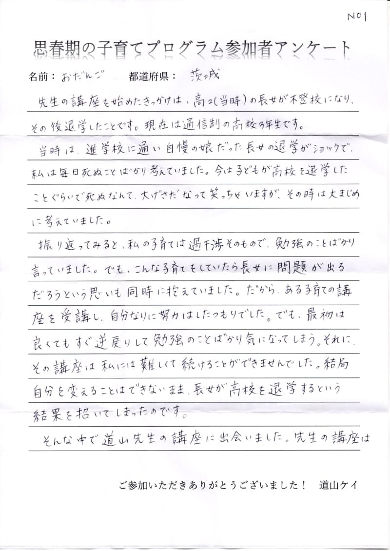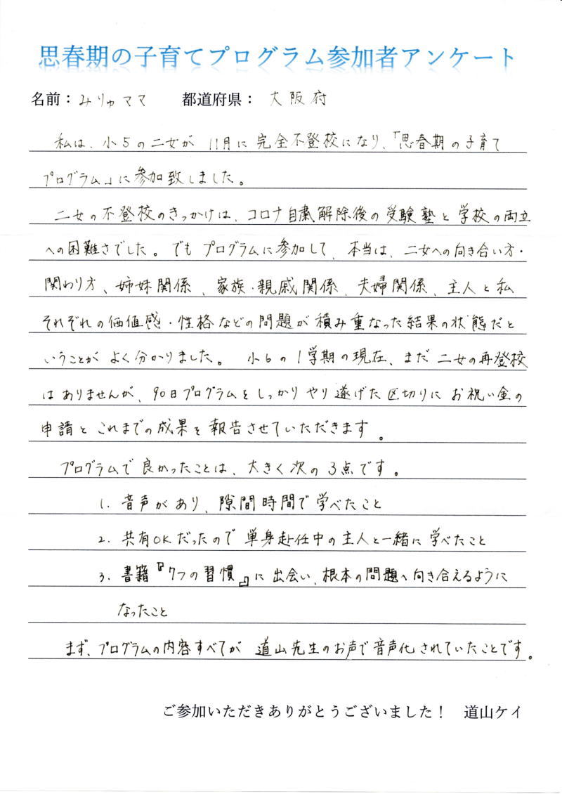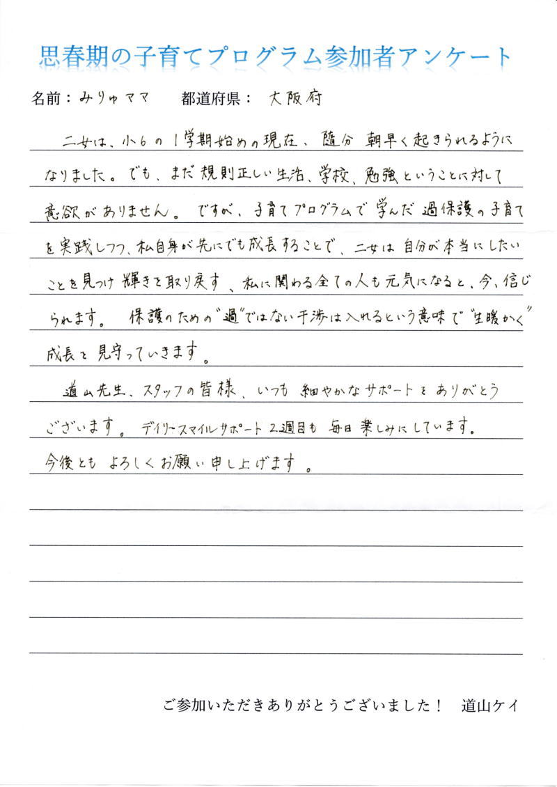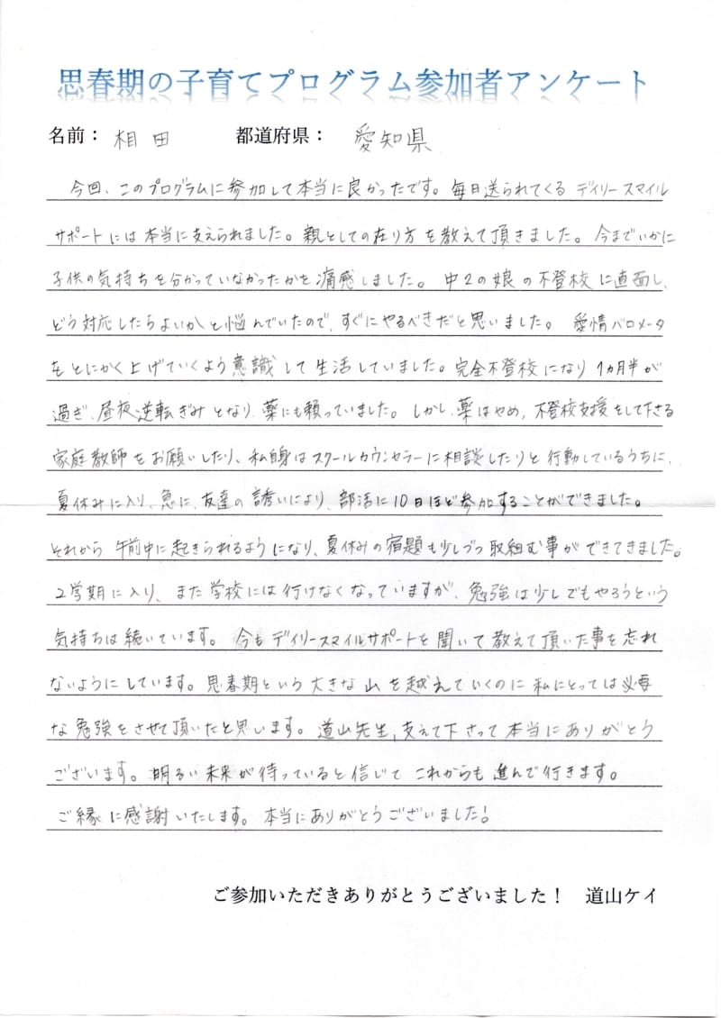 1か月後には必ずお子さんの激しい反抗期が収まり、