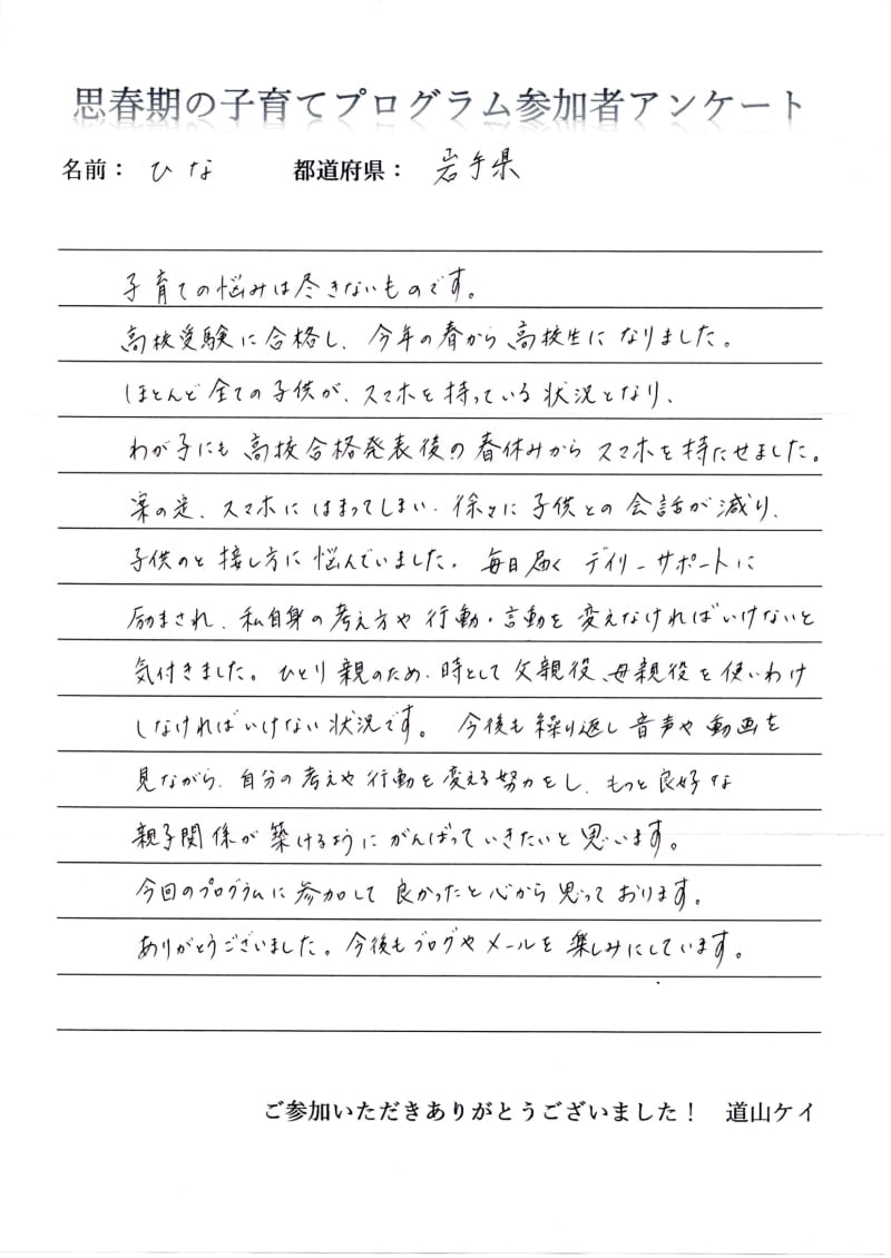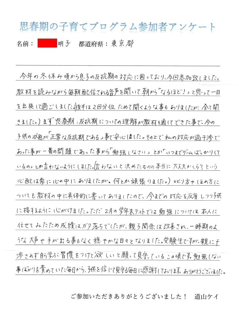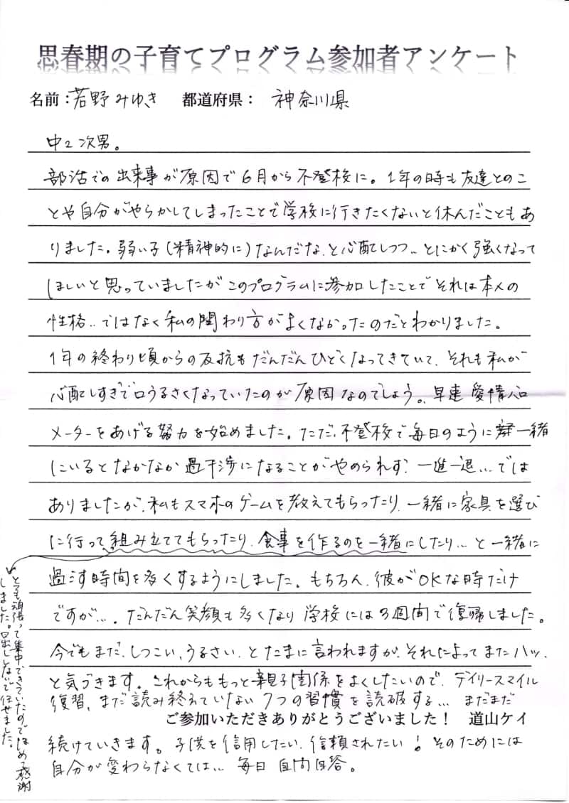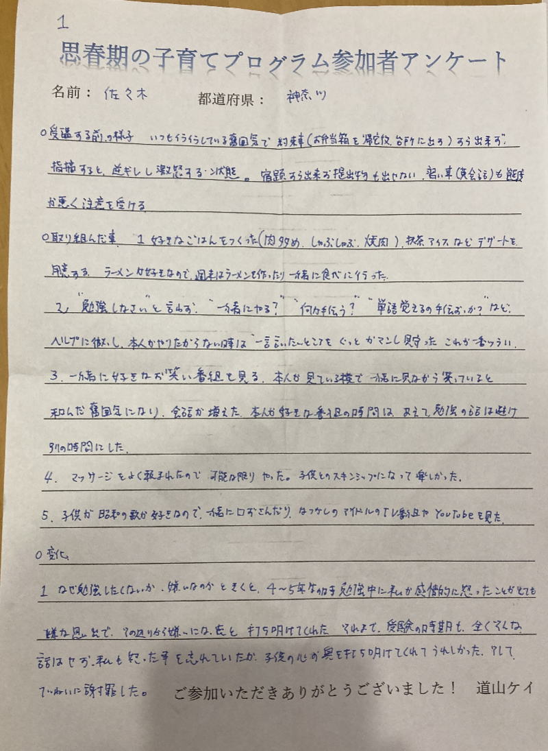 このプログラムは、思春期の子どもの複雑な気持ちを理解し、