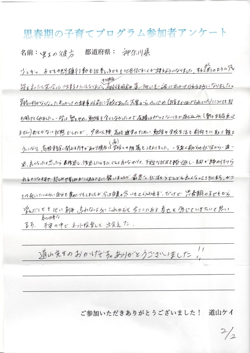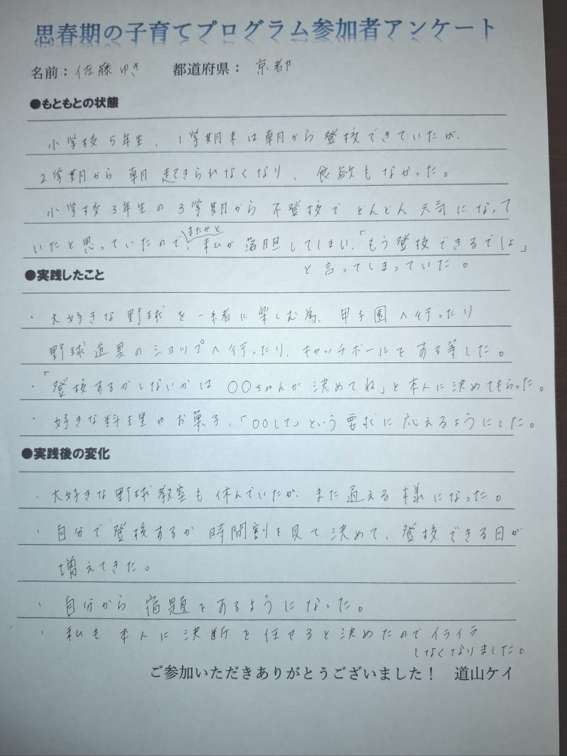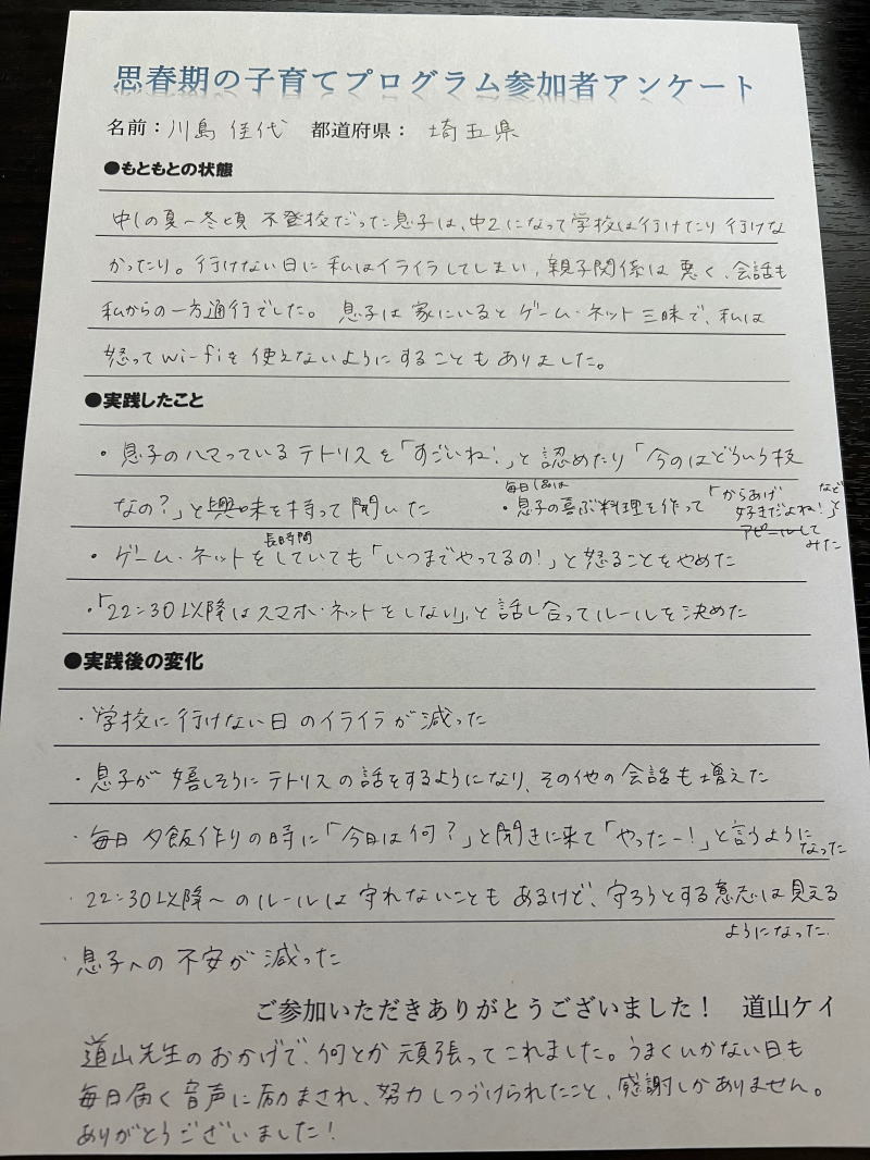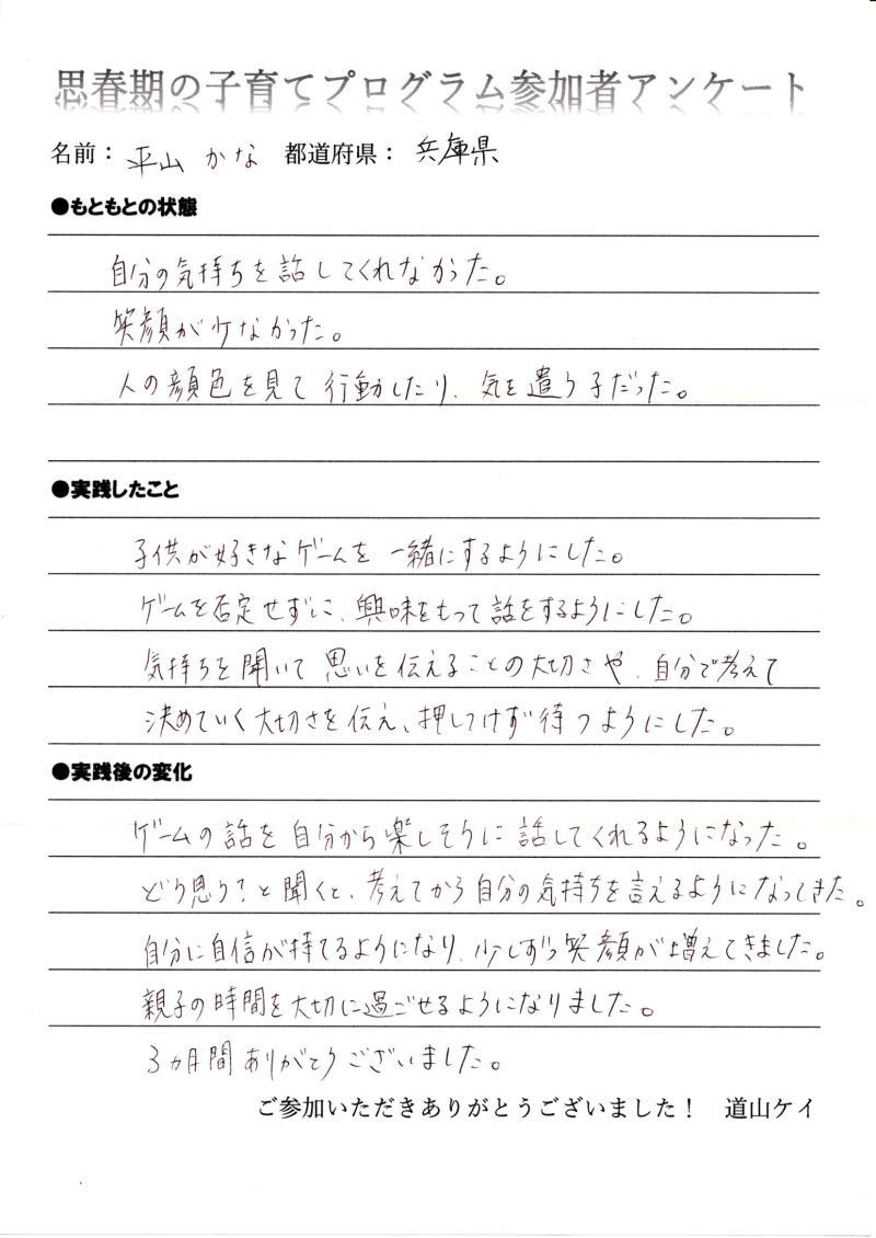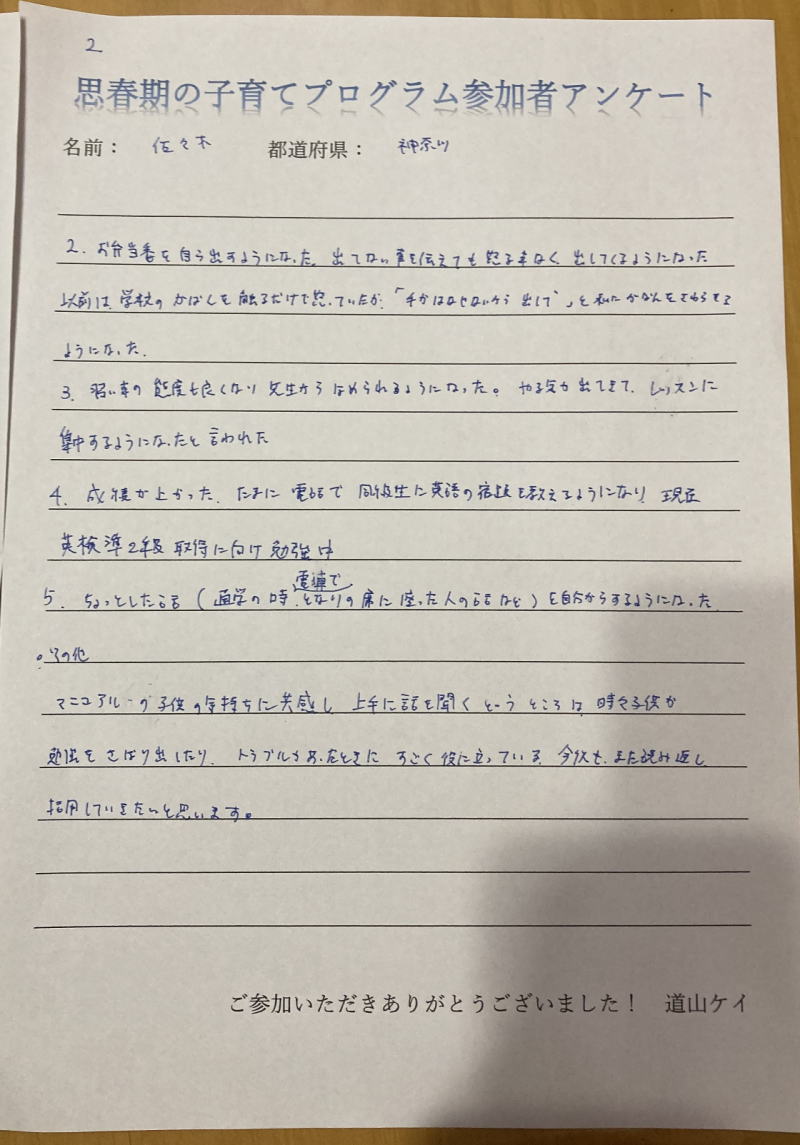 このプログラムは、思春期の子どもの複雑な気持ちを理解し、