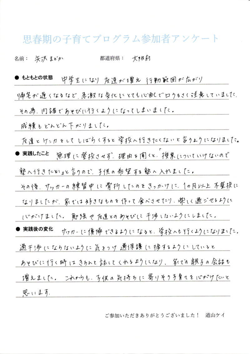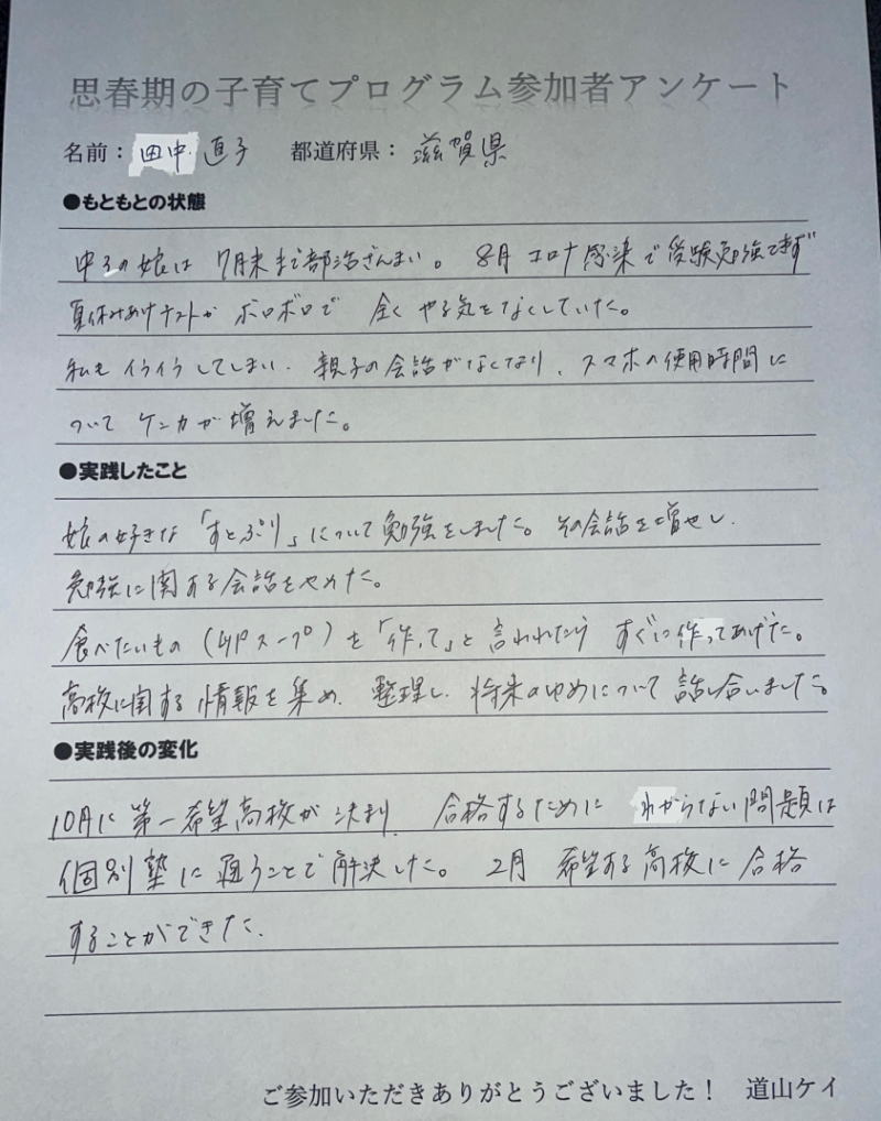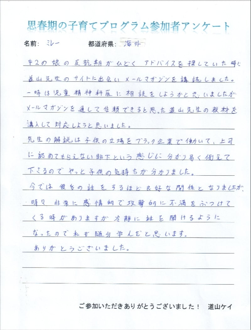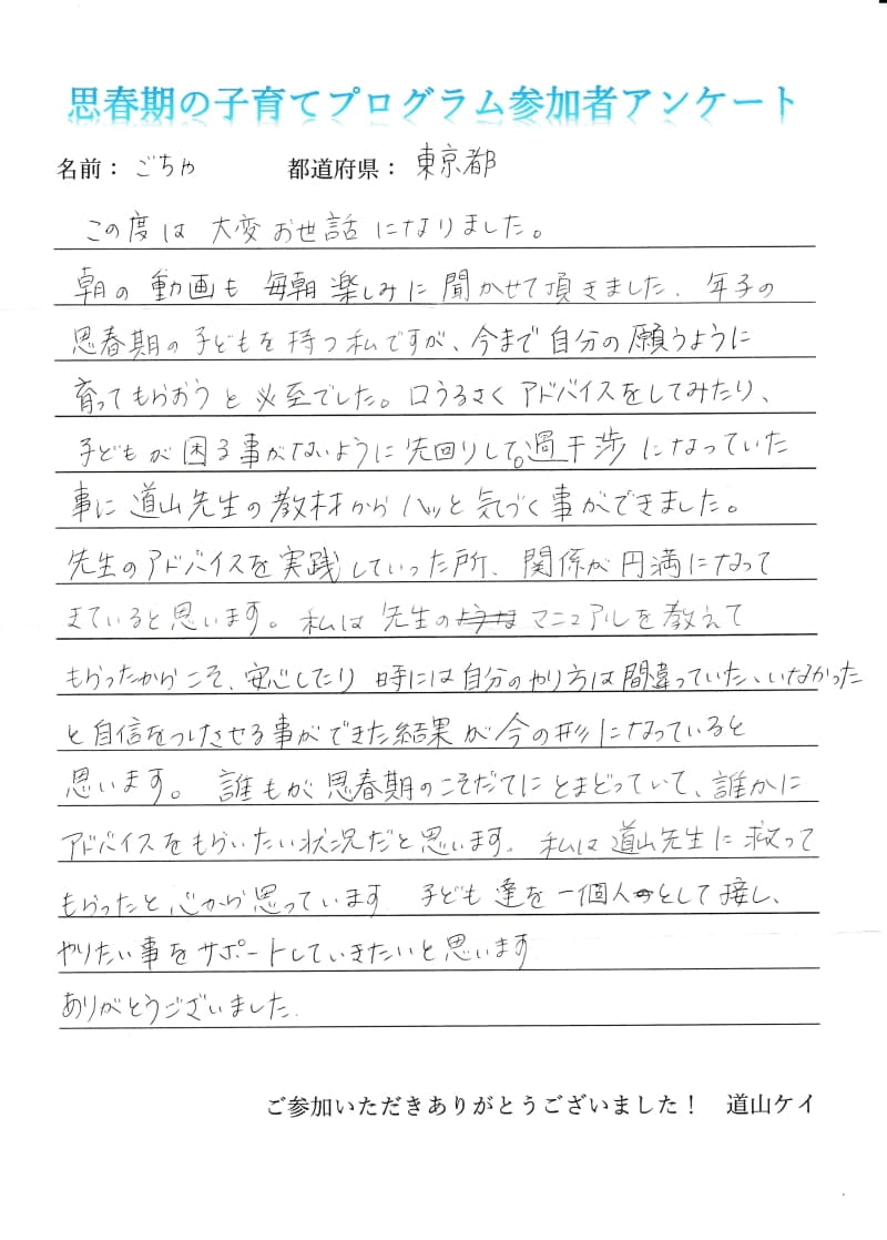 思春期の子どもに対する上手な接し方をお伝えしても、